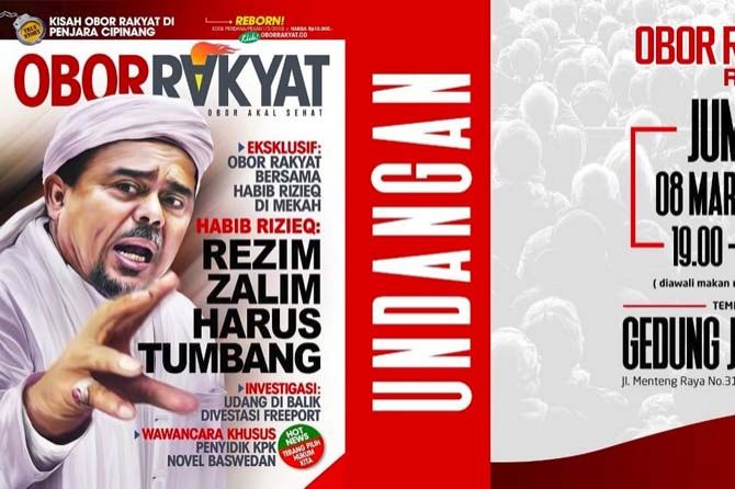 Dalam brosur itu terlihat Imam Besar Front Pembela Islam (FPI) Habib Rizieq Shihab jadi cover Majalah Obor Rakyat yang akan diluncurkan. Di brosur itu juga tertera judul berita ‘Eksklusif: Obor Rakyat Bersama Habib Rizieq di Mekkah’, ‘Habib Rizieq: Rezim Zalim Harus Tumbang’, ‘Investigasi: Udang di Balik Divestasi Freeport’,’Kisah Obor Rakyat di Penjara Cipinang’ dan ‘Wawancara Khusus Penyidik KPK Novel Baswedan’.Terpisah, ketika dimintai konfirmasi ihwal rencana terbitnya tabloidnya, ?Pemimpin Redaksi (Pimpred) Tabloid Obor Rakyat, Setiyardi Budiono belum merespons ketika dikonfirmasi lewat aplikasi WhatApps dan juga sambungan telpon.