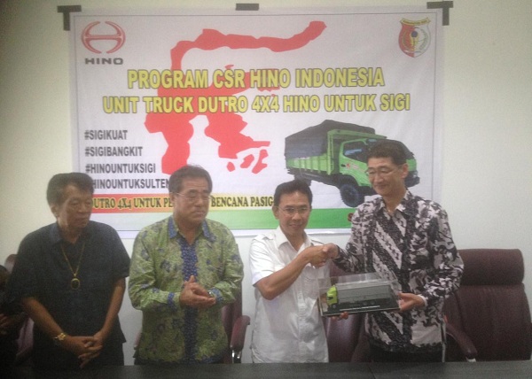 Bantuan ini diserahkan langsung oleh Presiden Direktur Of Hino Motors Sales Indonesia, Mr. H. Kayanoki kepada Bupati Sigi Moh. Irwan Lapatta.