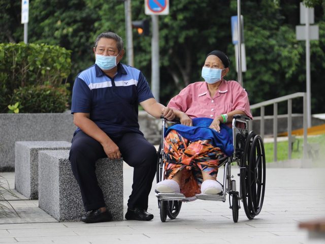 Ketua Umum Demokrat Susilo Bambang Yudhoyono (SBY) saat menemani istrinya Ani Yudhoyono berjalan-jalan di National University Hospital. Foto: istimewa