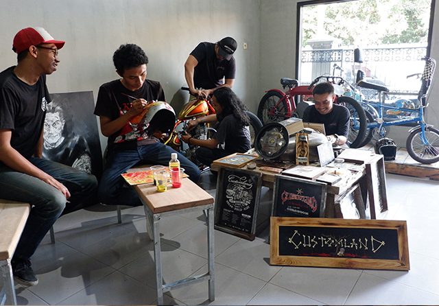 KEKINIAN- Para penggiat Customland berada di base camp mereka di kawasan Griya Kebraon Selatan pada Selasa (2/7/2019). Foto: Mariyama Dina/Jawa Pos