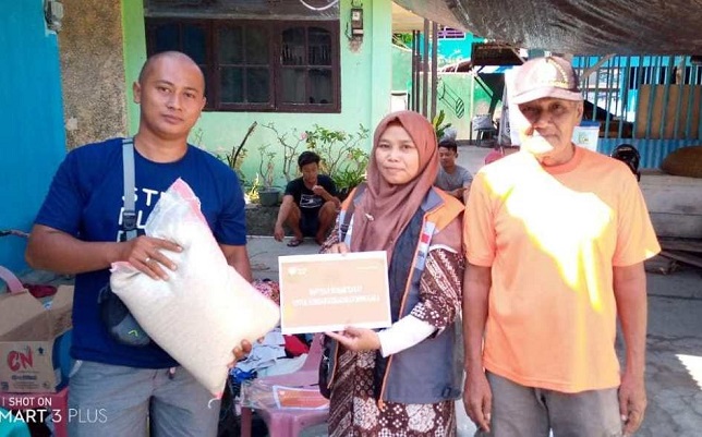 PALU EKSPRES, DONGGALA – Rumah Zakat Kabupaten Donggala menyalurkan bantuan sembako untuk korban kebakaran di Kelurahan Maleni, Kecamatan Banawa. Bantuan itu diserahkan langsung oleh relawan Rumah Zakat kepada 8 Kepala Keluarga korban kebakaran yang di dampingi ketua RT setempat.