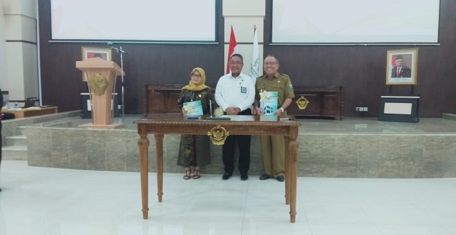 PALU EKSPRES, PALU– Kepala BPK Perwakilan Provinsi Sulawesi Tengah, Muhaimin, menyerahkan laporan hasil pemeriksaan (LHP) kinerja dan LHP tujuan tertentu kepada 12 Pemerintah Kabupaten/Kota se Sulteng, Senin (13/1/2020), di aula Kantor BPK Perwakilan Sulteng.
