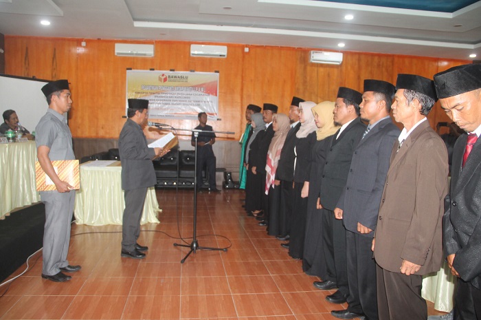Pengambilan sumpah janji jabatan disaksikan oleh Ketua Bawaslu Touna, Drs. Abas, Komisioner Bawaslu Touna, Suandi Thamrin dan Lemin, Ketua KPU Kabupaten Touna, Dirwansyah Putra, pegawai sekretariat Bawaslu Touna serta anggota Panwascam se-kabupaten Touna di Hotel Grand Pink Ampana, Touna, Senin (27/1/2020).