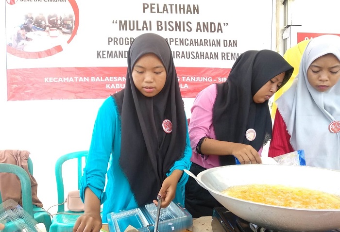 Tiga gadis remaja ini adalah sekian dari 250 anak yang dijangkau Save The Children melalui program pelatihan kewirausahaan. Di antara anak-anak yang ikut program ini terdapat anak putus sekolah, yang sekaligus menjadi korban langsung bencana 28 September 2018 silam.
