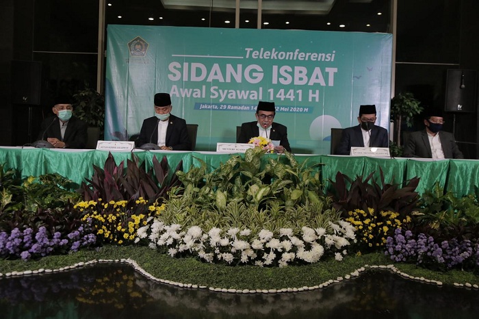 “Sidang isbat secara bulat menetapkan 1 Syawal 1441H jatuh pada hari Minggu, 24 Mei 2020,” ujar Menag dalam konferensi pers yang digelar usai Sidang Isbat 1 Syawal 1441H.