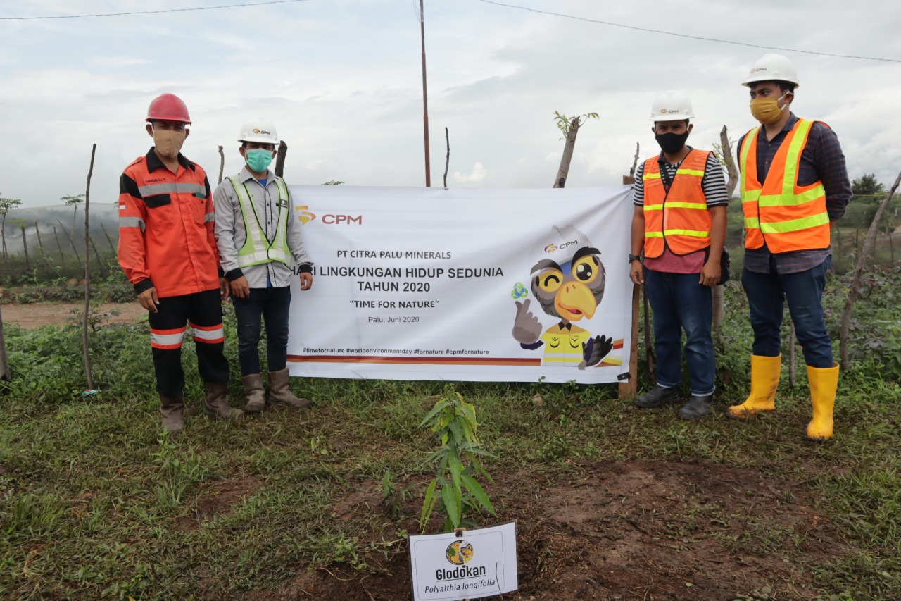 Sejumlah karyawan PT. Citra Palu Minerals melakukan aksi penanaman pohon dalam memperingati Hari Lingkungan Hidup Sedunia, Sabtu (6/6/2020). Foto: Istimewa