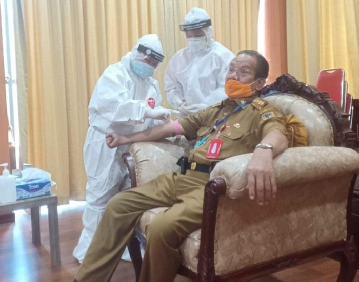 Gubernur Sulteng H. Longki Djanggola menjalani rapid test di ruang kerjanya, Senin (8/6/2020). Foto: Humas Pemprov Sulteng