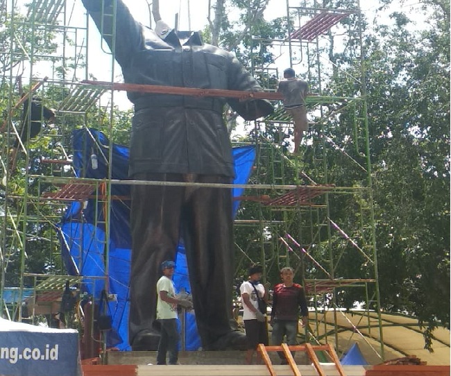PALU EKSPRES, PALU– Proses perakitan patung Presiden Pertama Republik Indonesia, Soekarno di taman Gedung Olah Raga (GOR) Palu rampung 95persen.