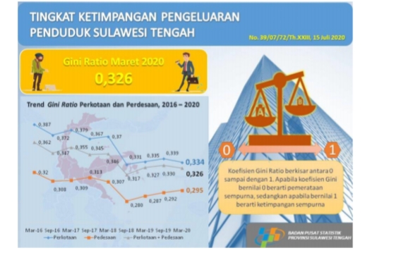 Namun secara umum, nilai gini ratio Sulawesi Tengah selama periode Maret 2016 hingga Maret 2020 terus mengalami fluktuasi. Pada Maret 2016 hingga September 2018 nilainya cenderung menurun. Kondisi ini menunjukkan bahwa selama periode Maret 2016 hingga September 2018 terjadi perbaikan pemerataan pengeluaran di Sulawesi Tengah, kata Kepala BPS Sulteng Dumangar Hutauruk yang disiarkan melalui chanel Youtube BPS Sulteng, Rabu (16/7/2020).