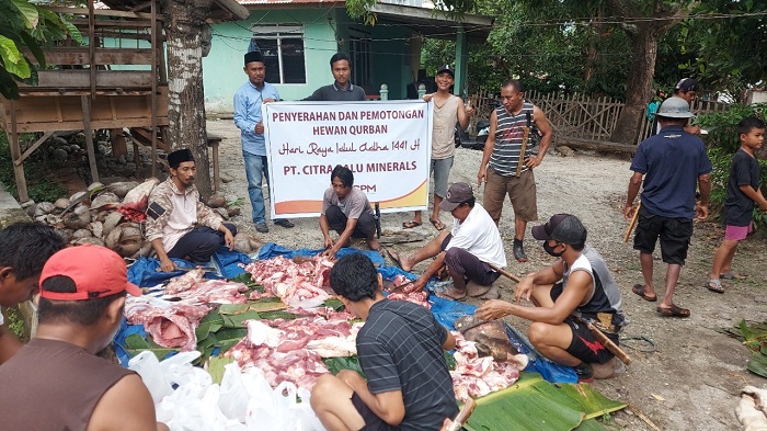 PALU EKSPRES, PALU– Manajemen dan karyawan PT. Citra Palu Minerals (CPM) menyalurkan hewan kurban di lima kelurahan di Kota Palu, Sulawesi Tengah. Penyaluran hewan kurban itu untuk berbagi kebahagiaan di Hari Raya Idul Adha 1441 Hijriah.