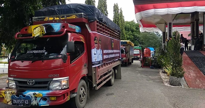 BANTU - Rombongan kendaraan pengangkut logistik bantuan warga Palu untuk korban bencana banjir Masamba, Luwu Utara dilepas Sekkot Palu, H Asri, Kamis 6 Agustus 2020. Foto: Hamdi Anwar/PE