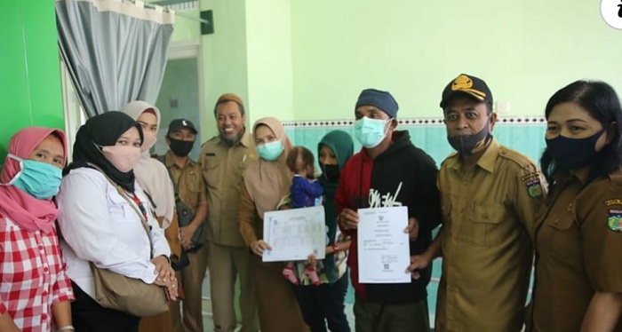 Penyerahan dokumen kependudukan kepada orang tua bayi penderita gizi buruk. Foto: Istimewa.