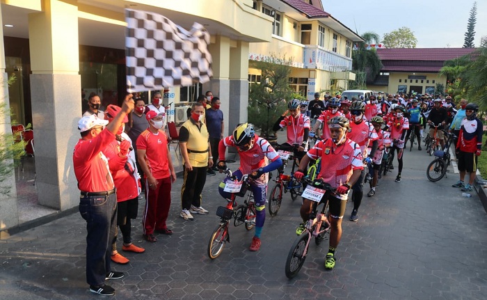 Sabtu (15/8/2020) pagi, Kapolda Sulawesi Tengah diwakili Wakapolda Sulteng Brigjen Pol. Drs. Nurwindiyanto, MM di halaman Mako Polda Sulteng melepas pelaksanaan Gowes Jelajah Kemerdekaan RI ke-75 tahun 2020 Sepeda lipat Road to 575 Kilometer dan pembentangan bendera merah putih sepanjang 75 meter.