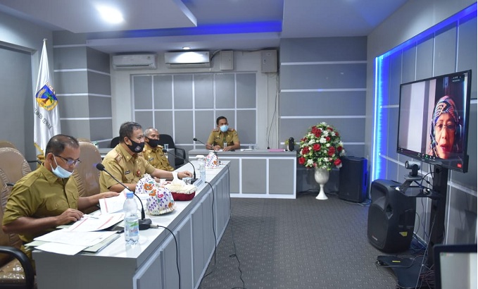 PALU EKSPRES, PALU– Gubernur Sulawesi Tengah melalui Asisten Administrasi Ekonomi dan Pembangunan Dr.Ir.Bunga Elim Somba,M.Sc mengikuti video conference dalam rangka penyusunan laporan monitoring dan evaluasi pelaksanaan kegiatan Rehabilitasi dan Rekonstruksi Pasca Bencana di Sulawesi Tengah dan NTB yang dilaksanakan Kementerian Keuangan Republik Indonesia pada Senin (31/8/2020).