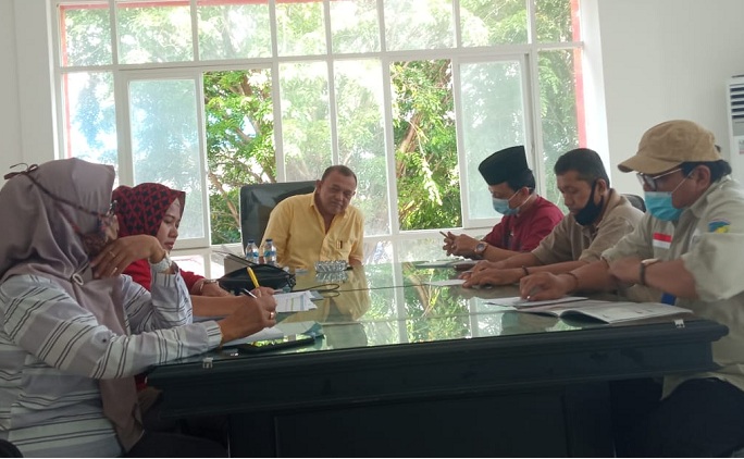 Rapat perdana antara Plt. Dinas P2KB Sulteng, Moh. Nizam dengan Sekretaris Bambang Suwandi, berseta para Kabid, Kasubag, dan Kasi, serta staf membahas pentingnya dukungan media dalam membackup berbagai kegiatan Dinas P2KB Sulteng, di ruang rapat Dinas P2KB Sulteng, Jln. Kartini Kota Palu, Jumat (11/9/2020). FOTO : Istimewa