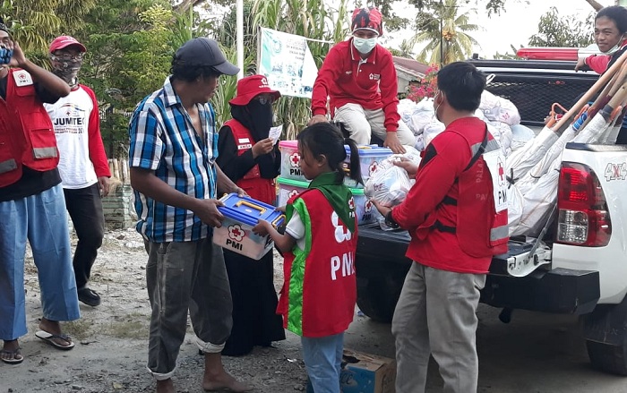 PALU EKSPRES, PARIMO– Palang Merah Indonesia (PMI) Kabupaten Parigi Moutong (Parimo) menyalurkan bantuan untuk warga korban banjir di Desa Bambalemo, Kecamatan Parigi, berlangsung di halaman Kantor Desa setempat, Jumat (11/9/2020) sekitar pukul 17.00 WITA.