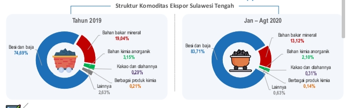 Menurut Kecuk, peran ekspor Sulteng menyebabkan pertumbuhan ekonomi Sulteng terkontraksi tipis. Ekspor Sulteng tumbuh 53,64 persen dengan penyumbang terbesar adalah besi dan baja sebesar 87, 71 persen dari total ekspor Sulteng . “Komponen ini menjadi penahan kontraksi Sulteng di tengah pandemic Covid-19,” ujarnya.
