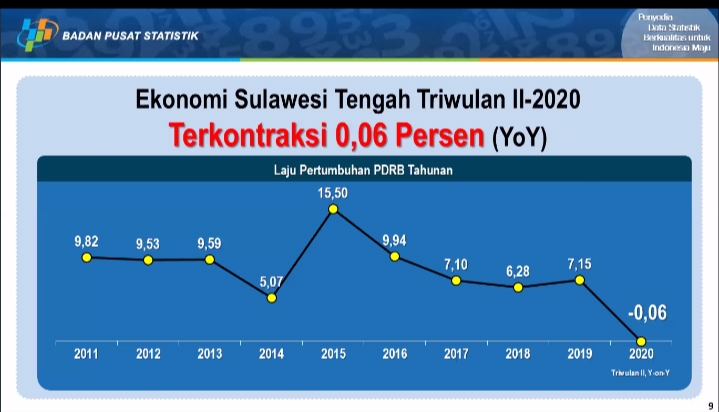 PALU EKSPRES, PALU– Dampak pandemi Covid-19 mengakibatkan pertumbuhan ekonomi nasional saat ini terus menurun. Di triwulan (TW) II pertumbuhan ekonomi nasional sebesar -5,32 persen dan cenderung resesi. Beberapa faktor yang sangat berpengaruh adalah karena adanya kebijakan PSBB suatu daerah serta penurunan pertumbuhan mitra dagang luar negeri.