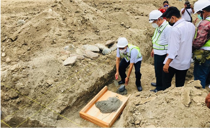 PALU EKSPRES, SIGI-Sekretaris Daerah Kabupaten Sigi Muh. Basir melakukan peletakan batu pertama pembangunan gedung produksi meubel kayu dan rotan sentra Industri Kecil Menengah (IKM) Furniture di Desa Jono, Kecamatan Dolo, Kabupaten Sigi.