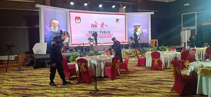“Mulai pukul 16.30 WITA, salah satu ruangan yang akan dipergunakan untuk debat publik kedua pasangan calon gubernur dan wakil gubernur Sulteng terlebih dahulu dilakukan sterilisasi oleh Tim Jibom Subden Gegana Satbrimob Polda Sulteng,” kata Kabidhumas Polda Sulteng Kombes Pol. Didik Supranoto melalui rilis, Sabtu (31/10/2020).