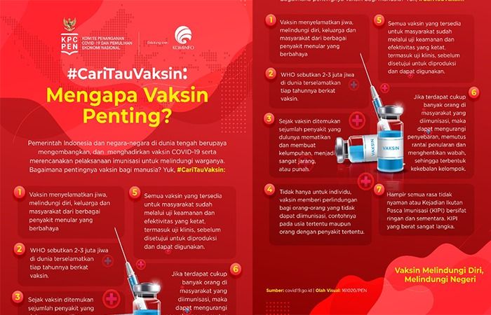 Ada tiga hal yang tidak bisa ditawar sedikitpun dalam hal vaksin, yaitu keamanan, khasiat dan mutu. Untuk itulah Badan Pengawas Obat dan Makanan (Badan POM) hadir. Perannya mengawal bahkan mengawasi secara terus menerus tiga hal di atas. Apalagi saat pandemi ini dimana kehadiran vaksin jadi hal yang sangat penting.