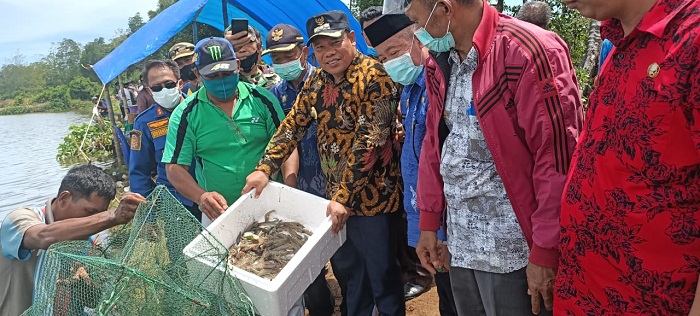Bupati Asrar mengatakan, bahwa panen raya udang vaname ini hanya berskala kecil saja. Namun lahan percontohan kurang lebih 4 hektare itu mampu menghasilkan udang tidak kurang dari 6,8 ton selama dua bulan, padat tebar 600 Ribu ekor.