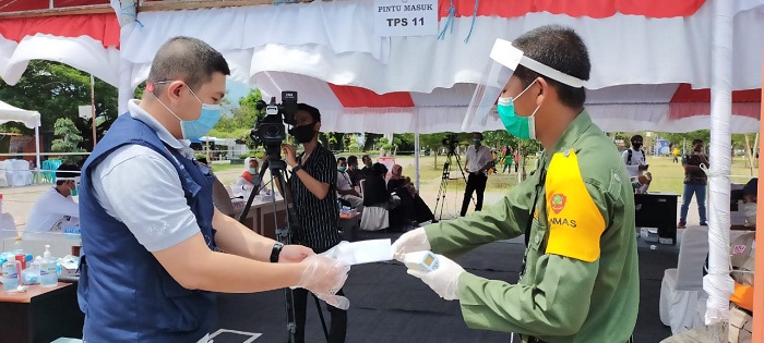 Halima menjelaskan setidaknya ada 11 hal teknis menyangkut pelaksanaan Prokes dalam simulasi ini. Mulai dari datangnya pemilih ke TPS yang harus mencuci tangan terlebih dahulu menggunakan sabub. Lalu memakai hand sanitizer. Kemudian pengukuran suhu tubuh oleh petugas KPPS. Lalu mengenakan sarung tangan plastik.