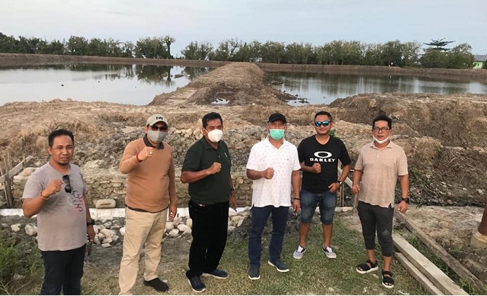 Hasanuddin Atjo bersama beberapa investor meninjau rencana pembuatan tambak supra intensiv vaname. Foto: istimewa