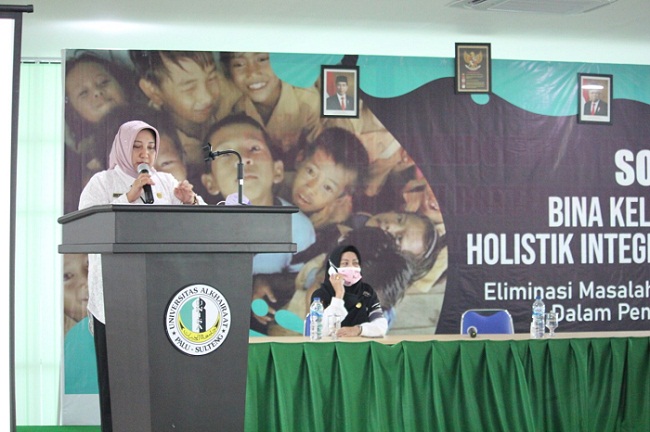 Demikian Kepala Perwakilan BKKBN Provinsi Sulawesi Tengah (Sulteng), Maria Ernawati dalam pembukaan sosialisasi sosilisasi Bina Keluarga Balita Holistic Integratif (BKB HI) eliminasi masalah stunting (Emas), Rabu 16 Desember 2020 di Aula Fakultas Kedokteran Universitas Al khairaat Palu.