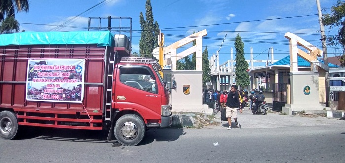 Pelepasan iring-iringan kendaraan oleh Kepala Disdikbud Provinsi Sulteng, Irwan Lahace, di halaman kantor Disdikbud Provinsi Sulawesi Tengah, Jalan Setia Budi Kota Palu, sekitar pukul 9.30 Wita.