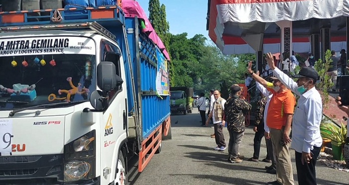 Belasan truck logistik ini merupakan donasi yang terkumpul dari seluruh organisasi perangkat daerah dan sejumlah elemen masyarakat Kota Palu.
