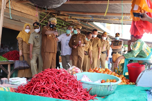 Wagub Sulteng  Dr. H. Rusli Dg. Palabbi,  SH, MH didampingi Asisten Administrasi  Ekonomi dan Pembangunan, Dr. Ir. Bunga Elim Somba, M.Sc, melakukan monitoring persediaan sembilan bahan pokok (Sembako) dalam rangka menyambut Hari Raya Idul Fitri 1442 H/2021 M, Selasa (27/4/2021). Foto: Biro Admin Pimpinan
