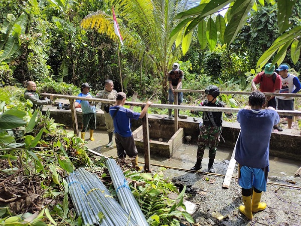 Material untuk perbaikan bak penampungan dan saluran air bersihpun segera didroping ke lokasi. Dan, tidak butuh waktu lama TNI Polri yang tergabung dalam Satgas Madago Raya dibantu masyarakat melakukan perbaikan.