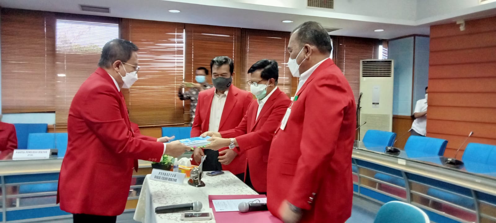 Penyerahan berkas berlangsung di Sekretariat Panitia Pemilihan Rektor (P2R), Lantai 4 Gedung Rektorat Unhas, Kampus Unhas Tamalanrea, Senin(16/8/2021).
