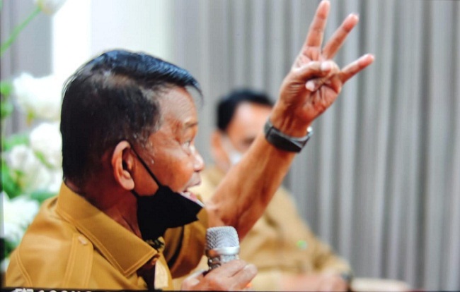 Pada kesempatan tersebut, melalui bupati yang hadir pada zoom meeting, Gubernur Rusdy mengimbau agar kepala desa membeli masker dan selanjutnya dibagikan masyarakat.