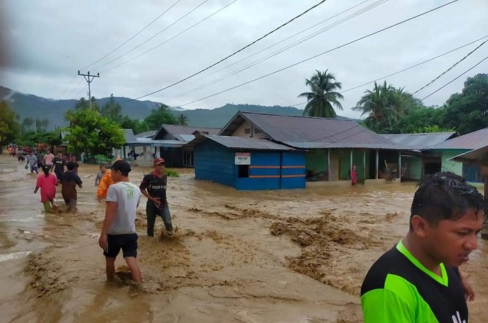 PALUEKSPRES, PARIMO – Banjir kembali menerjang 5 desa di di Kecamatan Tomini, Kabupaten Parigi Moutong (Parimo), Sulawesi Tengah, akibat luapan air sungai, Minggu (12/9/2021).