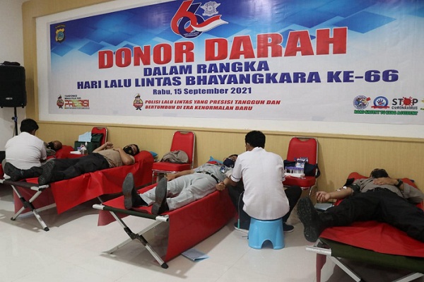 Direktorat Lalu Lintas Polda Sulteng gelar kegiatan Donor Darah, Rabu (15/9/2021). Foto: Humas Polda Sulteng