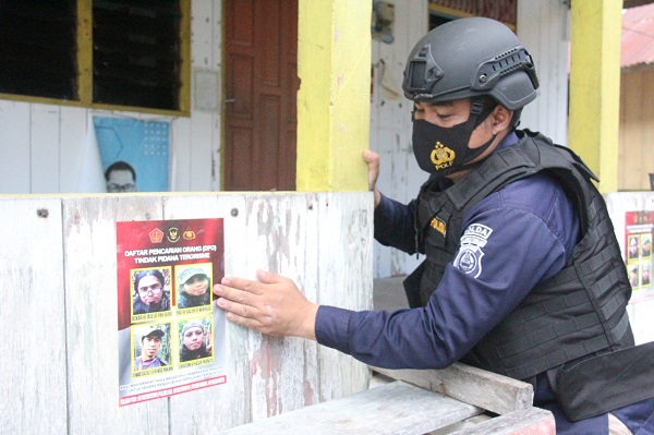 PALUEKSPRES, POSO – Upaya pencarian 4 orang daftar pencarian orang (DPO) teroris Poso terus diintensifkan oleh Satgas Madagoraya dengan menyebarkan dan menempel selebaran DPO