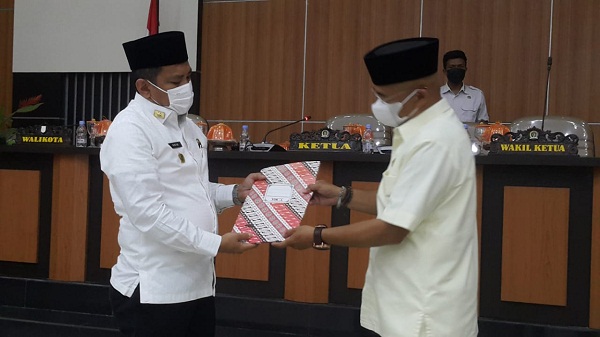 Agenda rapat paripurna kemudian dilanjutkan dengan penyerahan produk hasil rapat DPRD Palu masa sidang Cawu II tahun 2021 dari pimpinan DPRD kepada Asisten I Pemkot Palu Rifani Pakamundi mewakili wali kota. (mdi/paluekspres)