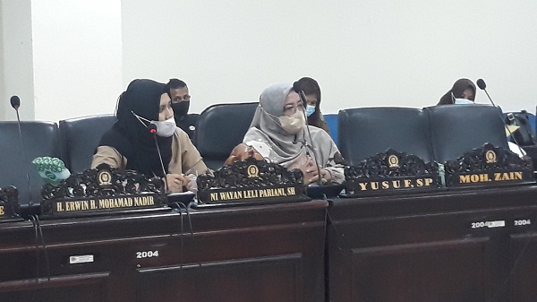 RDP - Kepala bidang pencegahan dan pengendalian penyakit menular, Dinkes Parimo, Fauzia Alhadad (Kanan) saat mengadiri RDP mewakili kepala Dinas Kesehatan. Foto : ASWADIN/PE