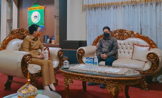 PALUEKSPRES, POSO– Kepala Otoritas Jasa Keuangan (OJK) Provinsi Sulawesi Tengah, Gamal Abdul Kahar, melakukan kunjungan audiensi kepada Bupati Poso dr Verna Gladies Merry Inkriwang, Selasa (12/10/2021).