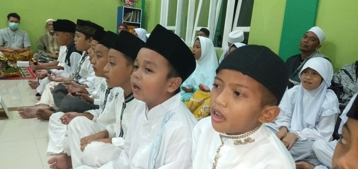 Santri santriwati TPA Jabal Nur membacakan salawat Nabi. Foto: Abidin/PE