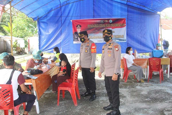 Pelaksanaan vaksinasi yang dilaksanakan di wilayah operasi Satgas Madago Raya pada hari ini, selain digelar di Dusun Tamanjeka, Desa Masani, Kecamatan Poso Pesisir, Satgas Madago Raya juga melaksanakan vaksinasi kepada masyarakat yang digelar di halaman Mako Polsek Poso Pesisir Selatan Polres Poso. (bid/paluekspres)