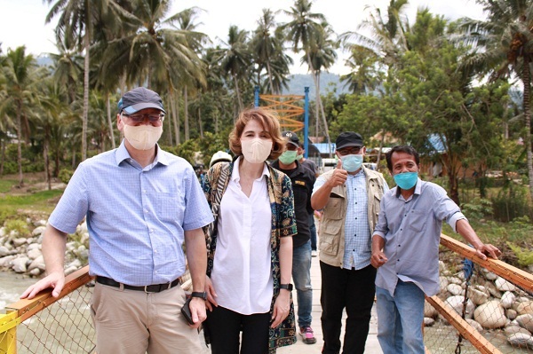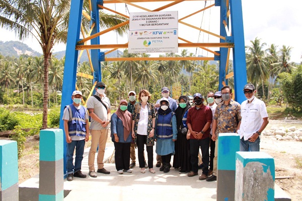 PALUEKSPRES, SIGI– Rombongan dari Delegasi Bank Pembangunan Jerman, KfW, UNDP dan YKMI melakukan kunjungan lapangan (field trip) ke Proyek Rekonstruksi Jembatan Gantung Tuva yang pekerjaannya didanai oleh Pemerintah Jerman, KfW melalui UNDP dan dikerjakan oleh YKMI, di Desa Tuva, Kecamatan Gumbasa, Kabupaten Sigi, Minggu (5/12/2021).