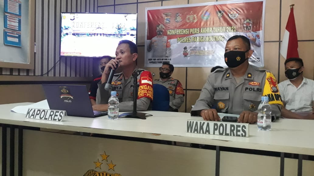 PALUEKSPRES,PARIMO – Kapolres Parigi Moutong (Parimo), AKBP Yudy Arto Wiyono S.I.K mengatakan, jumlah kasus konvensional sepanjang tahun 2021 sebanyak 338 kasus. Sementara perkara yang berhasil diselesaikan sebanyak 202 kasus atau 60 persen.