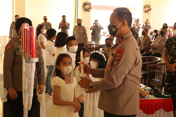 Kapolda Sulawesi Tengah Irjen Pol Drs. Rudy Sufahriadi dalam sambutan tertulis yang dibacakan oleh Wakapolda Sulteng Brigjen Pol Hery Santoso.,S.I.K.,M.H mengatakan, tahun ini merupakan tahun ke dua natal dirayakan dengan suasana sederhana tanpa kerumunan dan keramaian namun tetap khidmat.