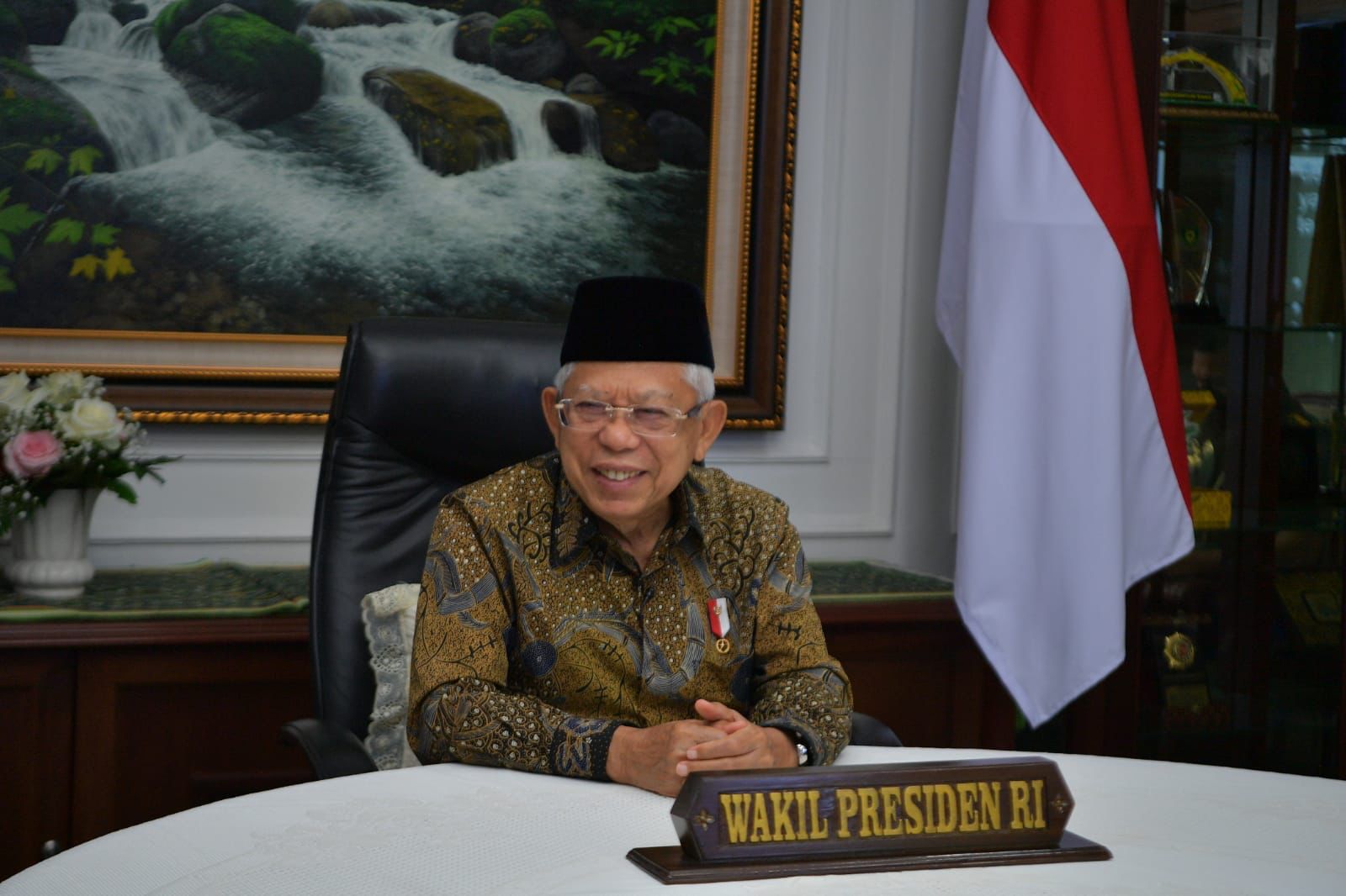 Wapres K.H. Ma’ruf Amin saat menghadiri secara daring Wisuda VIII Institut Agama Islam Bani Fattah (IAIBAFA) Jombang Tahun Akademik 2021/2022Sabtu (12/02/2022)/ foto: Setwapres/ PaluEkspres