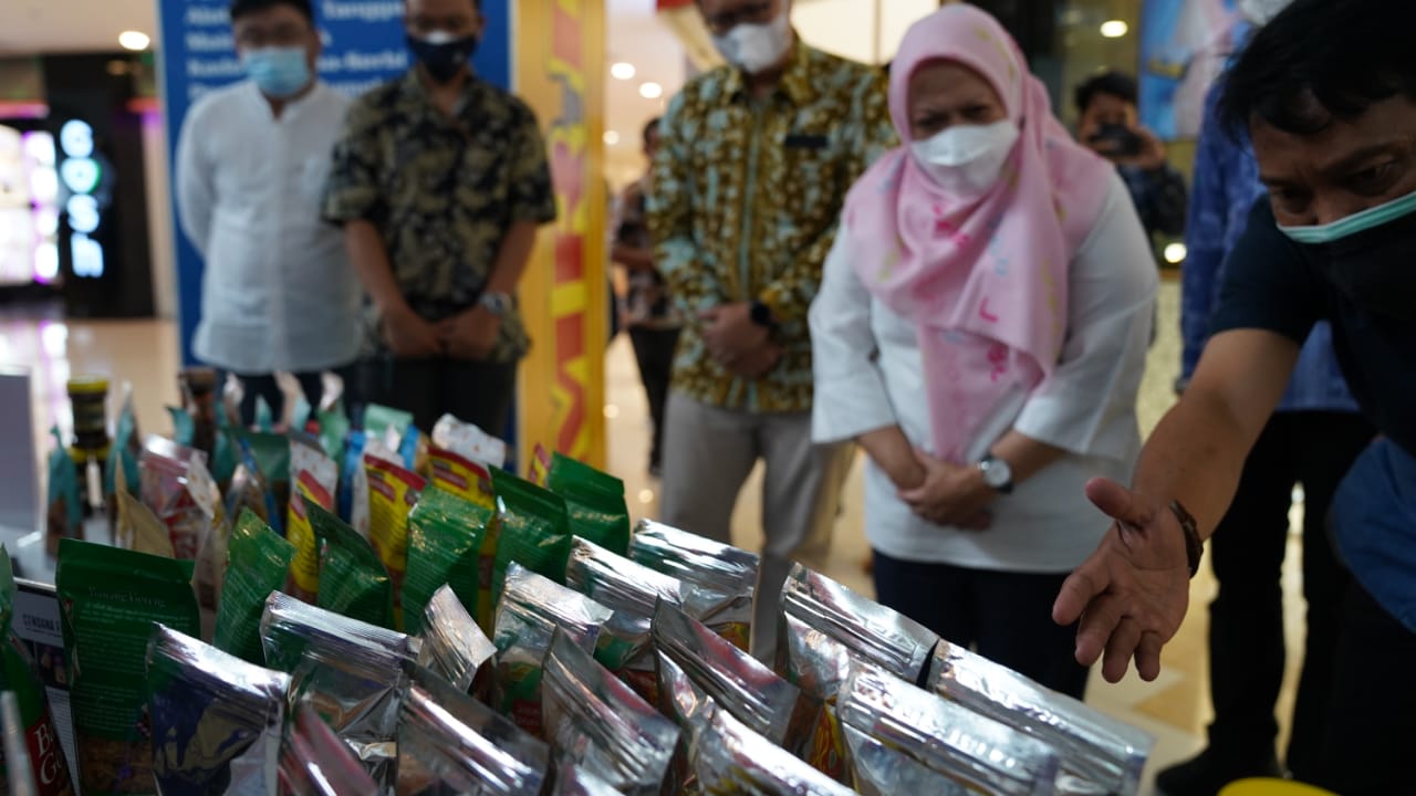 Wakil Wali Kota Palu, dr Renny A Lamadjido saat meninjau pameran UMKM, Sabtu (12/2/2022) Foto: Istimewa/ PaluEkspres