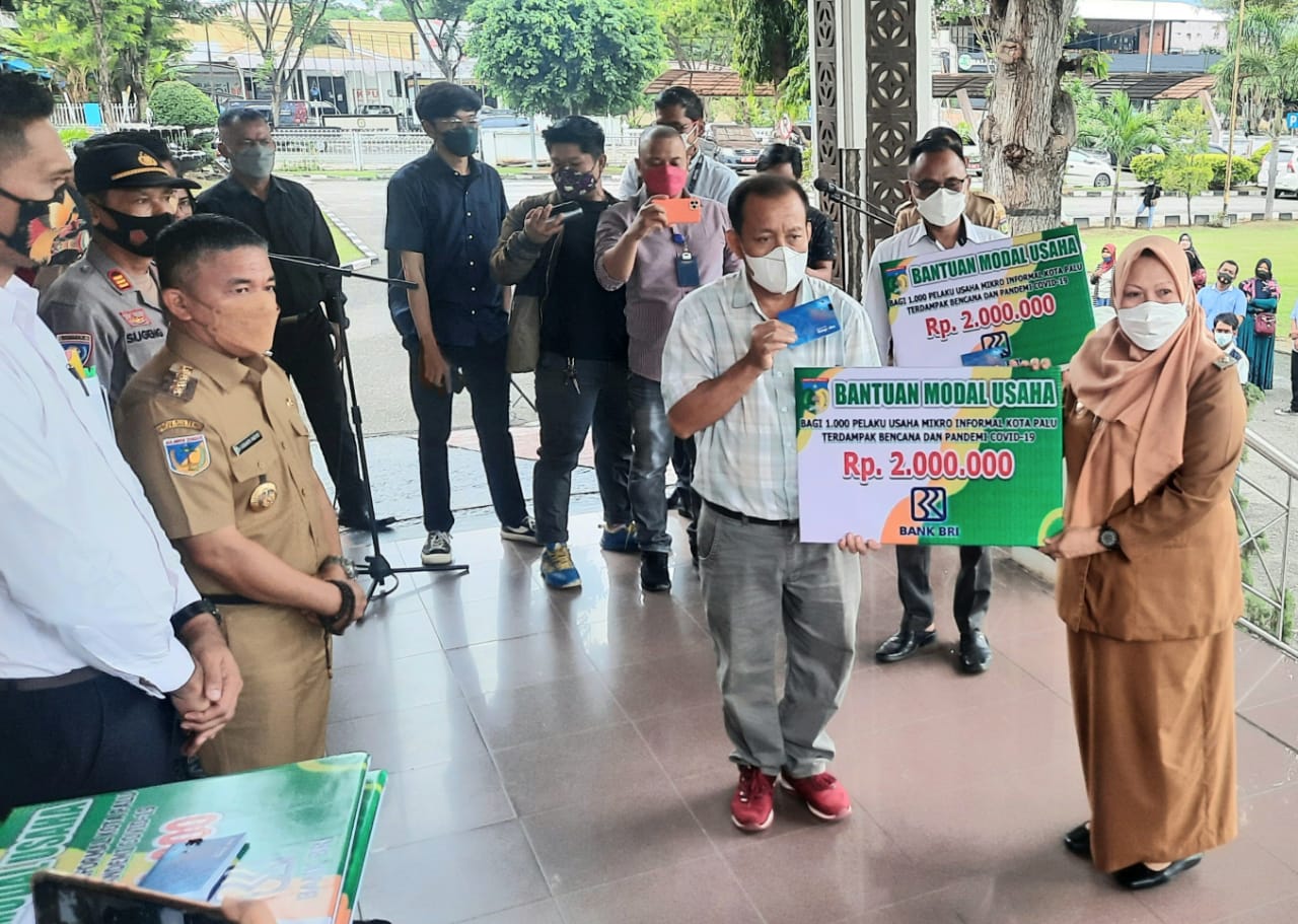 PALUEKSPRES, PALU- Sebanyak 1000 pelaku Usaha Mikro Informal Kota Palu menerima bantuan modal usaha sebesar Rp2 juta dari Wali Kota Palu H Hadianto Rasyid di halaman kantor Walikota Palu, Senin (21/2/2022).