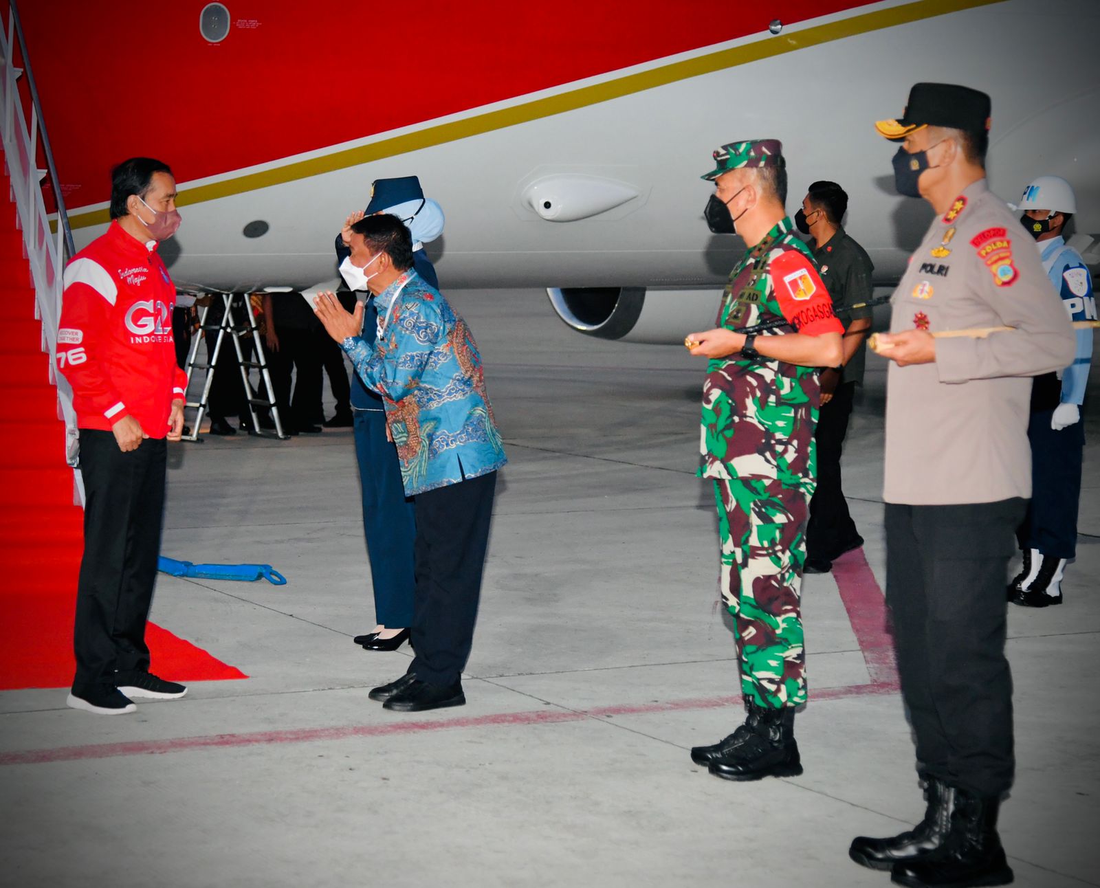 PALUEKSPRES, PALU- Presiden Joko Widodo dan rombongan tiba di Bandar Udara Mutiara SIS Al Jufrie, Kota Palu, sekira pukul 18.20 Wita, Kamis )24/2/2022).